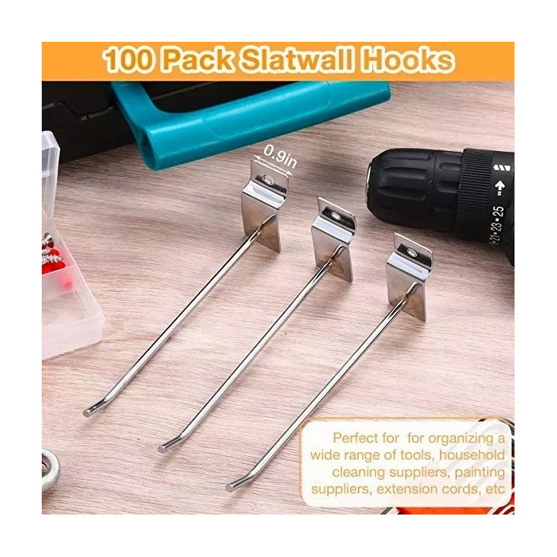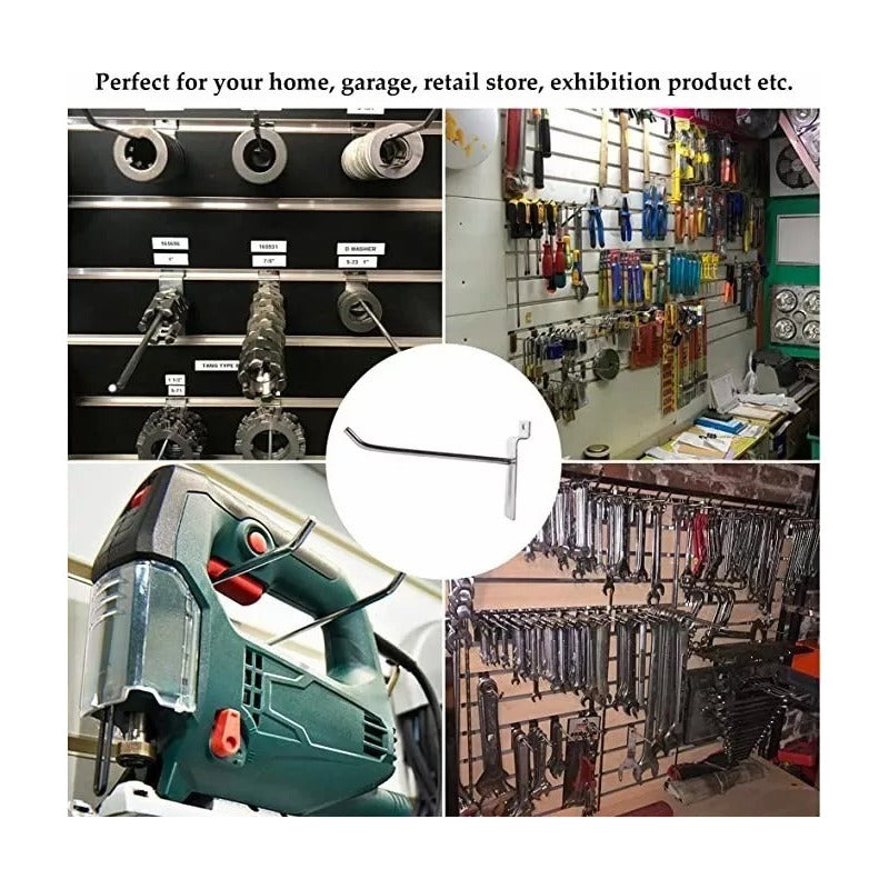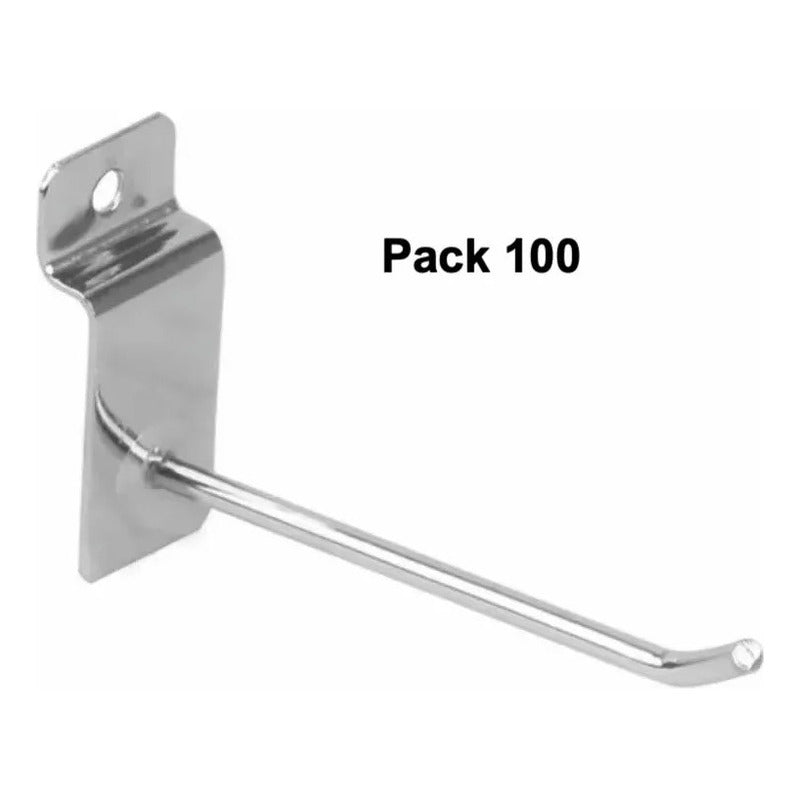Pack 100 Ganchos Gancheras Panel Ranurado 25 Cm Exhibidor Gris