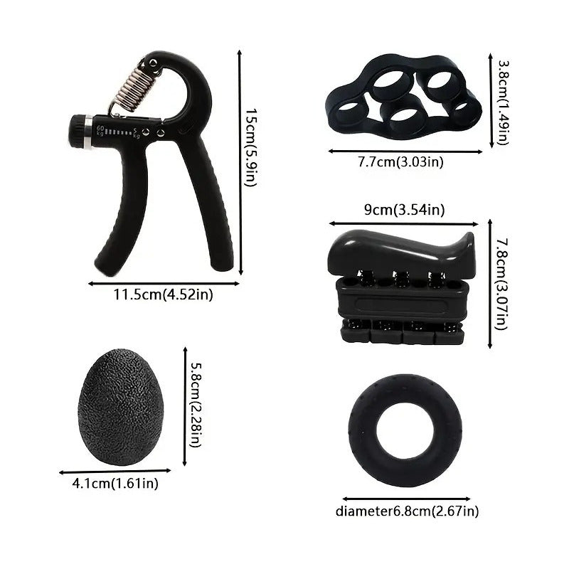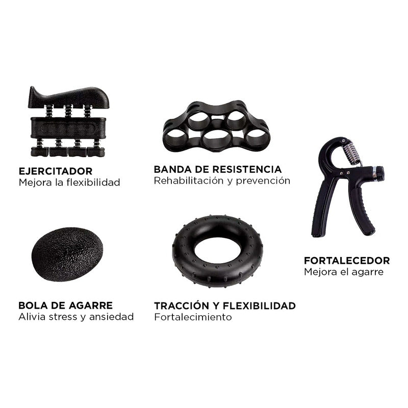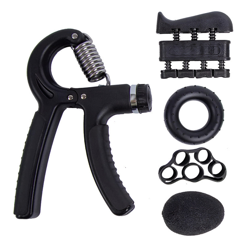 Set 5 En 1 Ejercitador Manos Hand Grip Y Antebrazo 5-60 Kg Negro