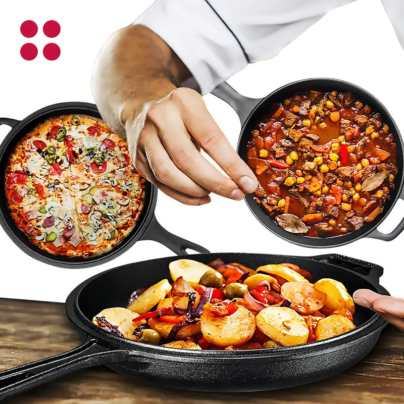 Sarten De Hierro Fundido Con Tapa 26cms (2 Sartenes) Negro