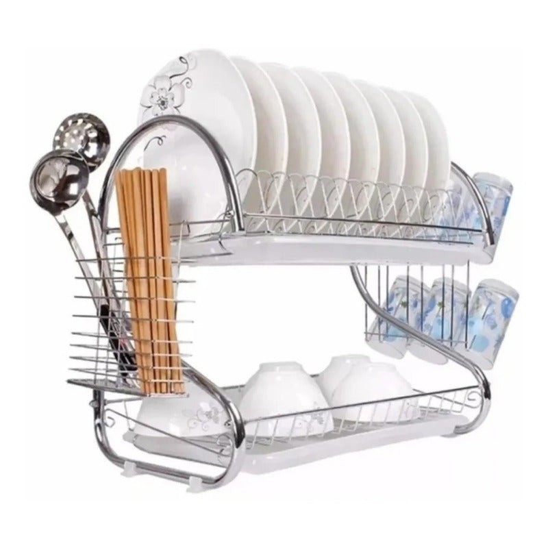 Comercial Vendito Spa, tiene el agrado de comercializar Escurrido de platos de Acero Inoxidable!! Aburrido de no encontrar escurridores metálicos? aburrido de que el escurrido plástico de tu casa se ponga negro y tenga mal olor? tu escurrido plástico es poco higiénico? En comercial vendito spa tenemos la solución.... Secaplatos doble con base. Material: acero cromado. 2 Pisos: -piso superior para platos. -Piso inferior para vasos, copas, tazas, etc. Escurridor de cubiertos y de vasos son desmontables. Bandeja plástica desmontable en el piso inferior. MEDIDAS SECAPLATOS SIN ACCESORIOS: ALTO:38CM ANCHO:42CM PROFUNDIDAD:25CM Todas nuestros producto son importados, no somos revendedores!!!! Somos importadores directos de productos!! Tenemos diversos accesorios de mascota, artículos de hogar, artículos de ferretería y mas!!! ¿Por qué nuestros productos tienen precios tan convenientes? Somos importadores mayoristas, importamos altos volúmenes de productos directo desde fabricas, lo que nos permite entregar precios convenientes a clientes y revendedores Comercial vendito Spa!! Desde 2016 importando los precios mas bajos!!